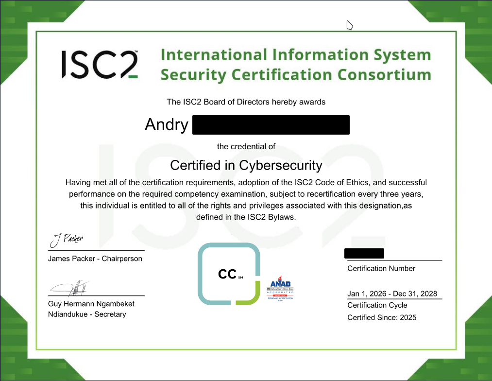 CC (Certified in CyberSecurity) — Dec 10 2025